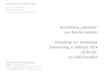 Zweiteilige Ausstellung in Hanau und Frankfurt, als Auseinandersetzung mit Tod und Abwesenheit.